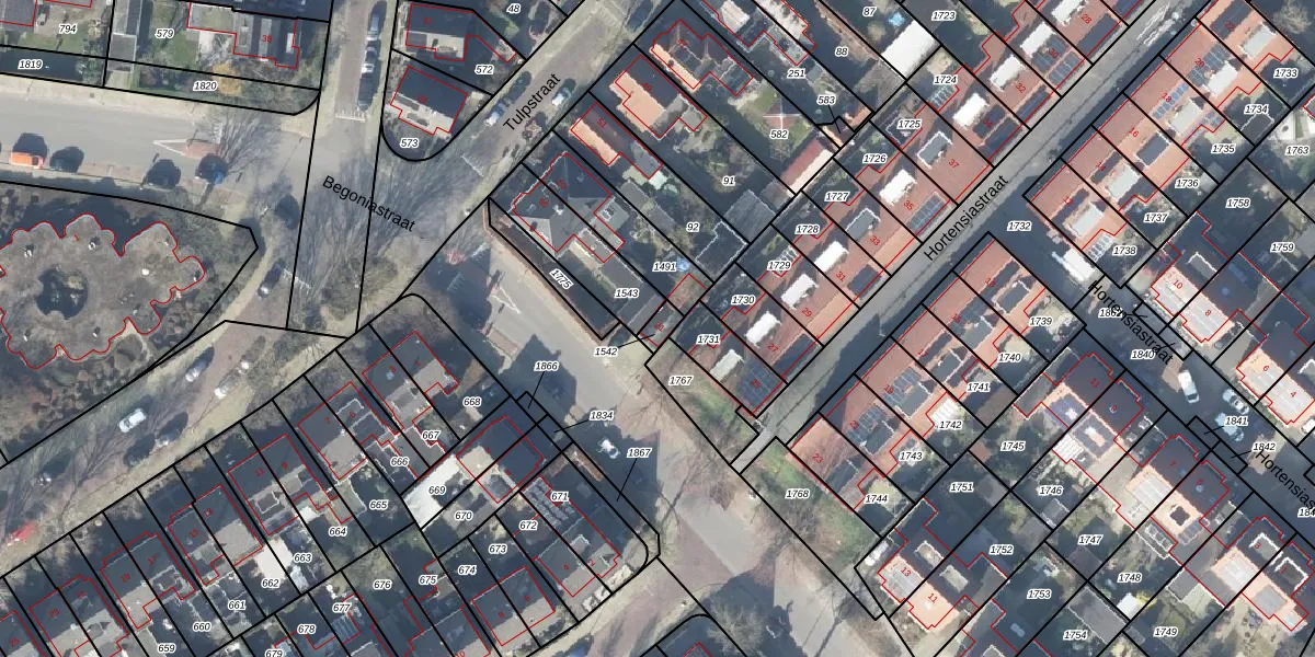 Gebruik de zoekbalk of klik op een perceel voor informatie over de adressen binnen dit perceel.