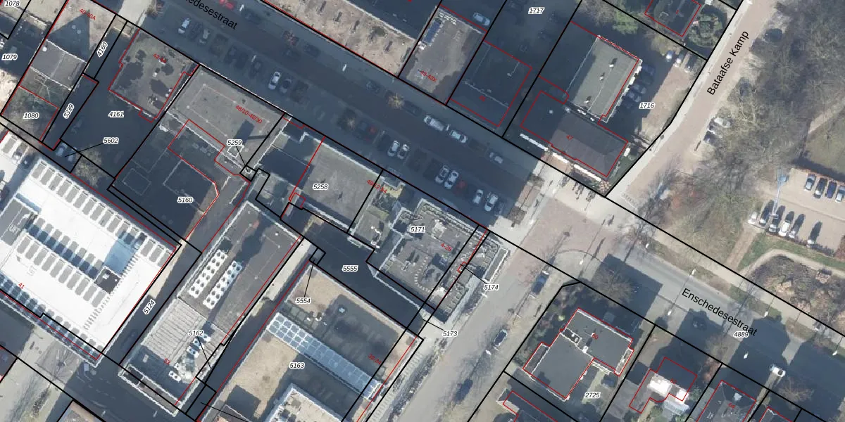 Het adres ligt op het perceel HGL01-O-5171, dat zich in de kadastrale gemeente Hengelo Overijssel bevindt. Het perceel is 519 m² groot. Dat is kleiner dan de gemiddelde perceeloppervlakte in Hengelo Overijssel, dat op 1639,76 m² ligt. De grootste perceeloppervlakte in de kadastrale gemeente is 57,4 ha. De kleinste oppervlakte bedraagt 0 m². Er zijn 33 adressen aanwezig op het perceel. De huidige grenzen van het perceel zijn digitaal in de Basisregistratie Kadaster (BRK) geregistreerd op 19-09-2006.