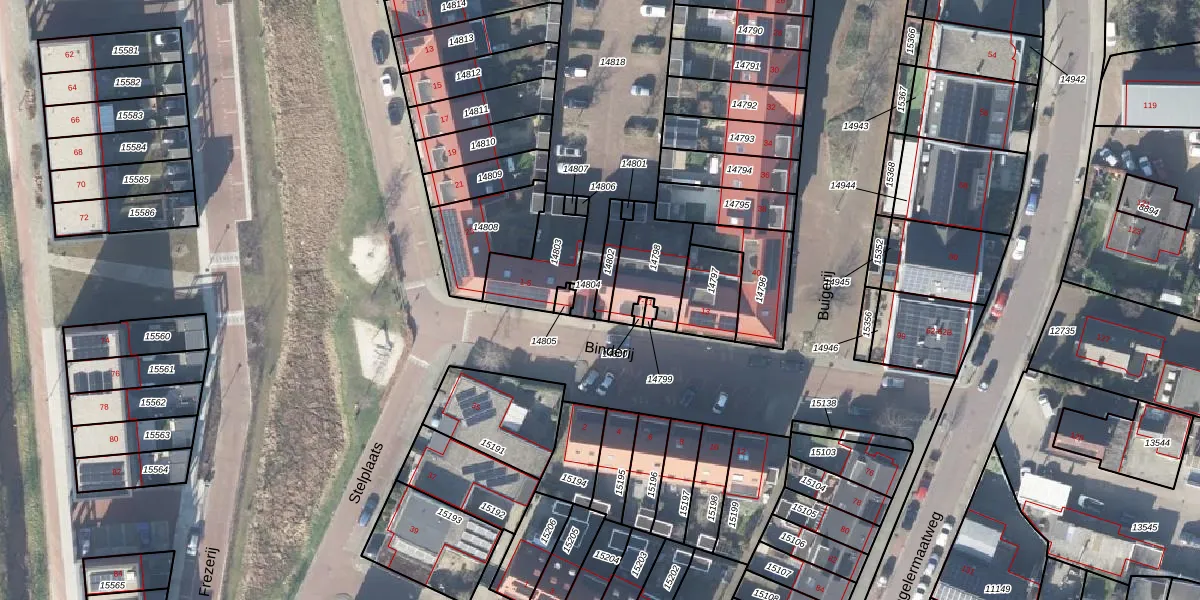 Gebruik de zoekbalk of klik op een perceel voor informatie over de adressen binnen dit perceel.