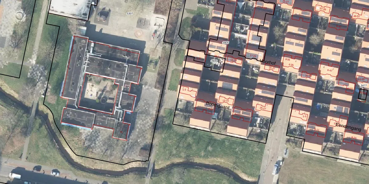Het perceel waarop Boomgaard 1 staat heeft een oppervlakte van 1,8 ha. Dit is een zeer groot perceel. De perceeloppervlakte wordt geregistreerd door het Kadaster. Gedetailleerde informatie over de maten van dit perceel kunt u vinden in het rapport Kadastrale kaart met maatvoering van Boomgaard 1.