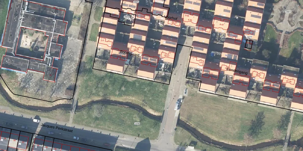 Het perceel waarop Boomgaard 21 staat heeft een oppervlakte van 1,8 ha. Dit is een zeer groot perceel. De perceeloppervlakte wordt geregistreerd door het Kadaster. Gedetailleerde informatie over de maten van dit perceel kunt u vinden in het rapport Kadastrale kaart met maatvoering van Boomgaard 21.