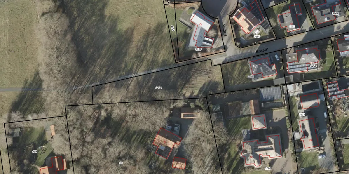 Het perceel waarop Braam 13 staat heeft een oppervlakte van 1204 m². Dit is een zeer groot perceel. De perceeloppervlakte wordt geregistreerd door het Kadaster. Gedetailleerde informatie over de maten van dit perceel kunt u vinden in het rapport Kadastrale kaart met maatvoering van Braam 13.