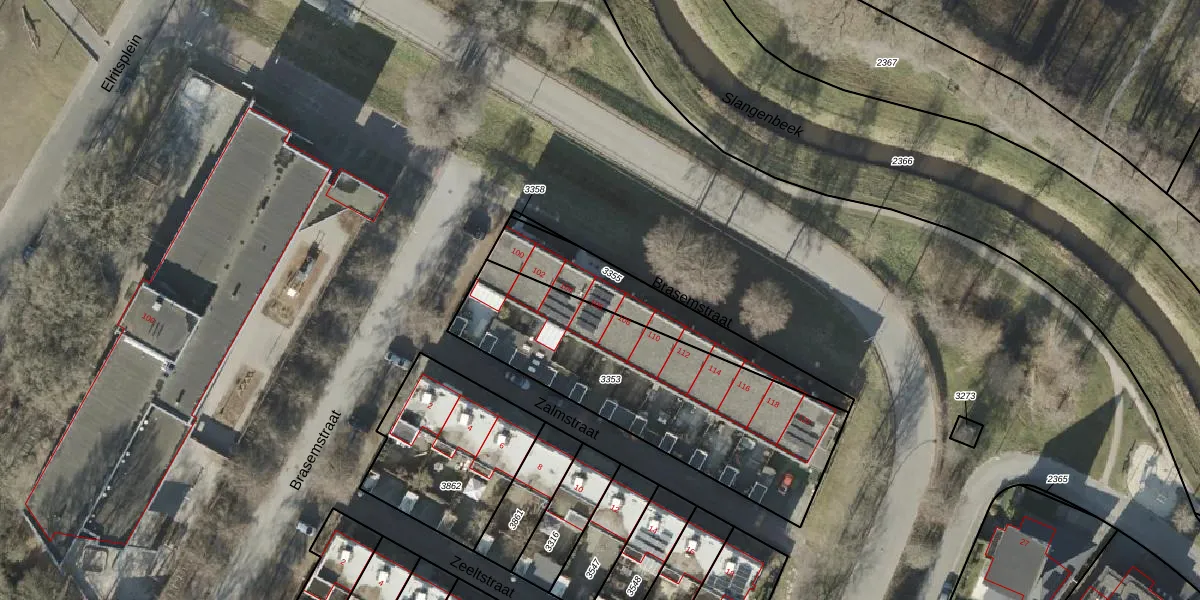 Het perceel waarop Brasemstraat 106 staat heeft een oppervlakte van 375 m². Dit is een groot perceel. De perceeloppervlakte wordt geregistreerd door het Kadaster. Gedetailleerde informatie over de maten van dit perceel kunt u vinden in het rapport Kadastrale kaart met maatvoering van Brasemstraat 106.