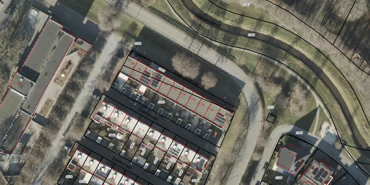 Het perceel waarop Brasemstraat 112 staat heeft een oppervlakte van 1140 m². Dit is een zeer groot perceel. De perceeloppervlakte wordt geregistreerd door het Kadaster. Gedetailleerde informatie over de maten van dit perceel kunt u vinden in het rapport Kadastrale kaart met maatvoering van Brasemstraat 112.