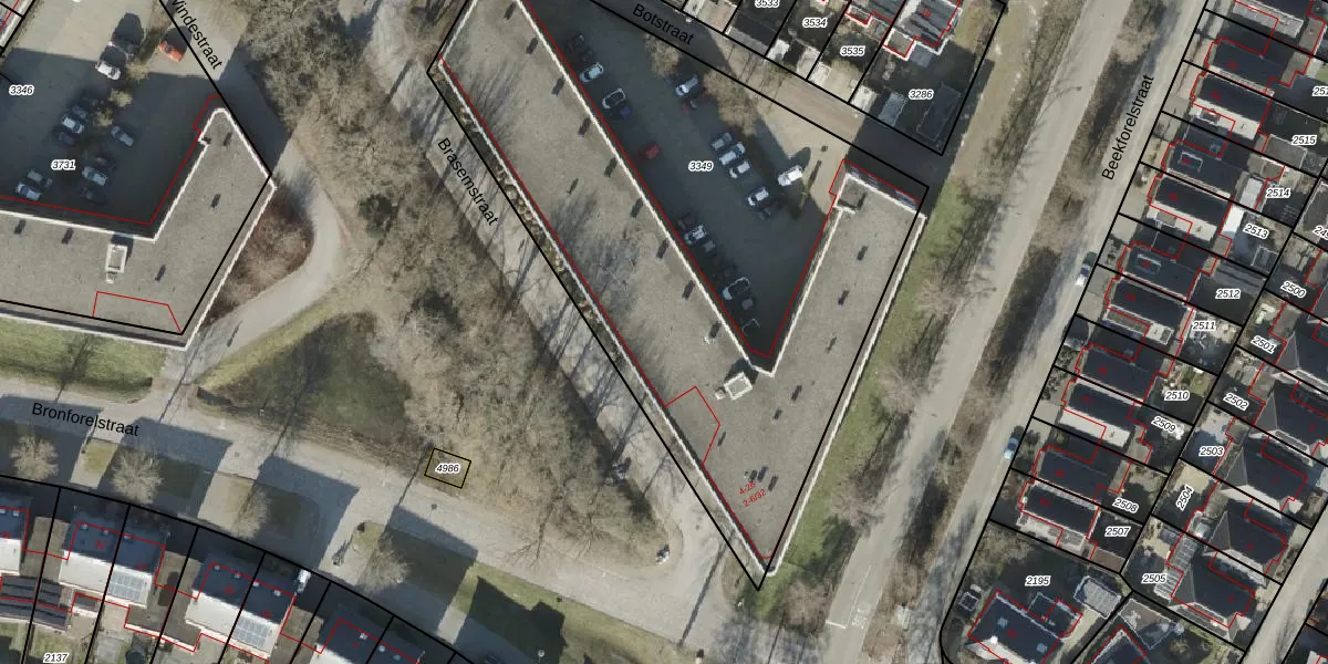 Het perceel waarop Brasemstraat 4-18 staat heeft een oppervlakte van 3315 m². Dit is een zeer groot perceel. De perceeloppervlakte wordt geregistreerd door het Kadaster. Gedetailleerde informatie over de maten van dit perceel kunt u vinden in het rapport Kadastrale kaart met maatvoering van Brasemstraat 4-18.