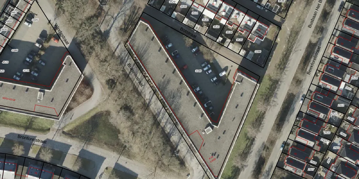Het perceel waarop Brasemstraat 6-22 staat heeft een oppervlakte van 3315 m². Dit is een zeer groot perceel. De perceeloppervlakte wordt geregistreerd door het Kadaster. Gedetailleerde informatie over de maten van dit perceel kunt u vinden in het rapport Kadastrale kaart met maatvoering van Brasemstraat 6-22.