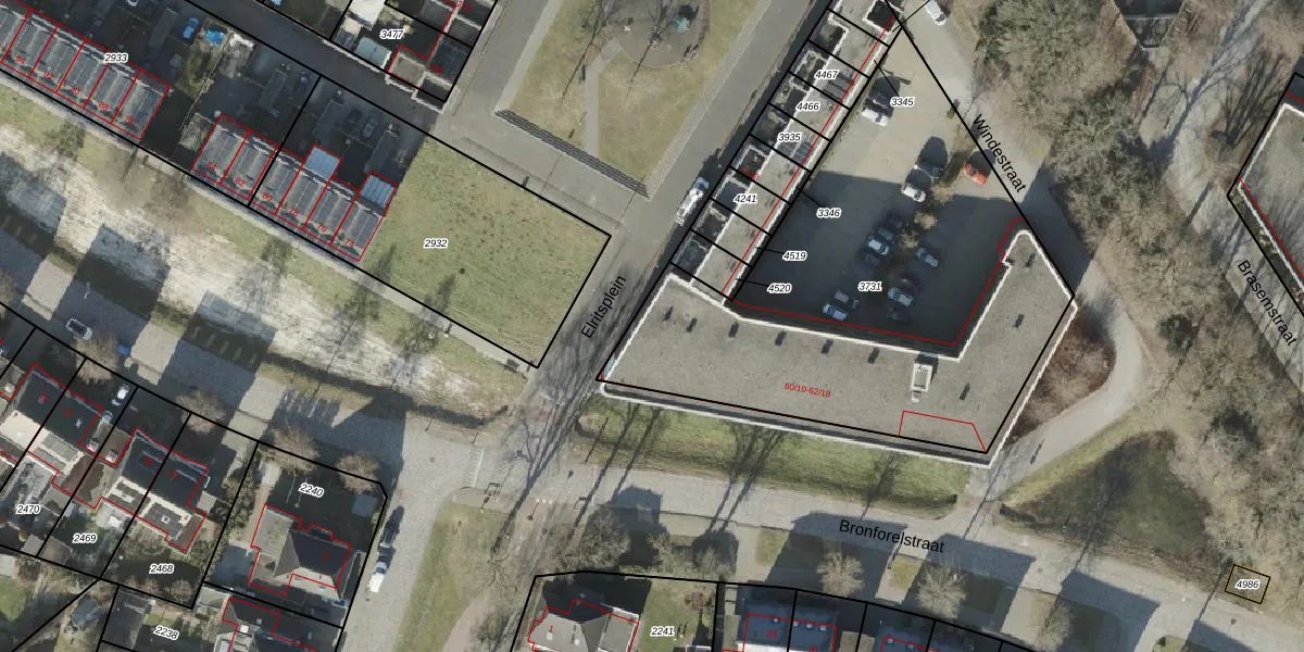 Het perceel waarop Bronforelstraat 62-18 staat heeft een oppervlakte van 2320 m². Dit is een zeer groot perceel. De perceeloppervlakte wordt geregistreerd door het Kadaster. Gedetailleerde informatie over de maten van dit perceel kunt u vinden in het rapport Kadastrale kaart met maatvoering van Bronforelstraat 62-18.
