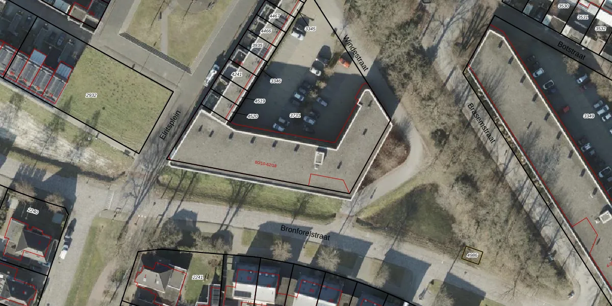 Het perceel waarop Bronforelstraat 62-8 staat heeft een oppervlakte van 2320 m². Dit is een zeer groot perceel. De perceeloppervlakte wordt geregistreerd door het Kadaster. Gedetailleerde informatie over de maten van dit perceel kunt u vinden in het rapport Kadastrale kaart met maatvoering van Bronforelstraat 62-8.