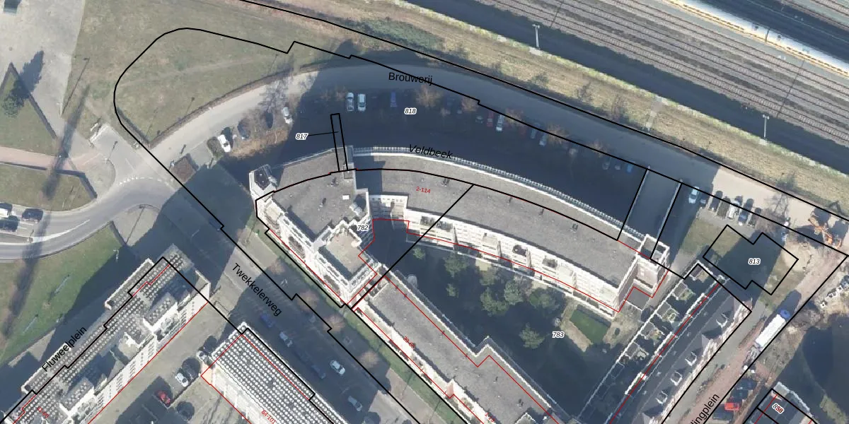 Het perceel waarop Brouwerij 76 staat heeft een oppervlakte van 958 m². Dit is een groot perceel. De perceeloppervlakte wordt geregistreerd door het Kadaster. Gedetailleerde informatie over de maten van dit perceel kunt u vinden in het rapport Kadastrale kaart met maatvoering van Brouwerij 76.