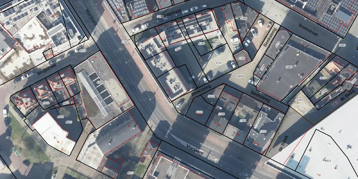 Het perceel waarop Brugstraat 13-E staat heeft een oppervlakte van 265 m². Dit is een middelgroot perceel. De perceeloppervlakte wordt geregistreerd door het Kadaster. Gedetailleerde informatie over de maten van dit perceel kunt u vinden in het rapport Kadastrale kaart met maatvoering van Brugstraat 13-E.