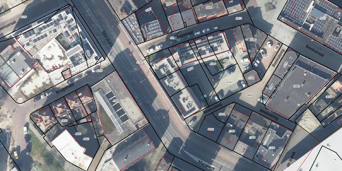 Het perceel waarop Brugstraat 9-G staat heeft een oppervlakte van 155 m². Dit is een middelgroot perceel. De perceeloppervlakte wordt geregistreerd door het Kadaster. Gedetailleerde informatie over de maten van dit perceel kunt u vinden in het rapport Kadastrale kaart met maatvoering van Brugstraat 9-G.