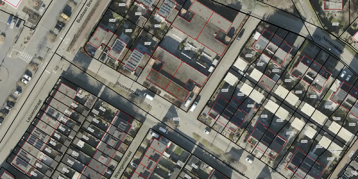 Het perceel waarop Brusselstraat 59 staat heeft een oppervlakte van 2088 m². Dit is een zeer groot perceel. De perceeloppervlakte wordt geregistreerd door het Kadaster. Gedetailleerde informatie over de maten van dit perceel kunt u vinden in het rapport Kadastrale kaart met maatvoering van Brusselstraat 59.