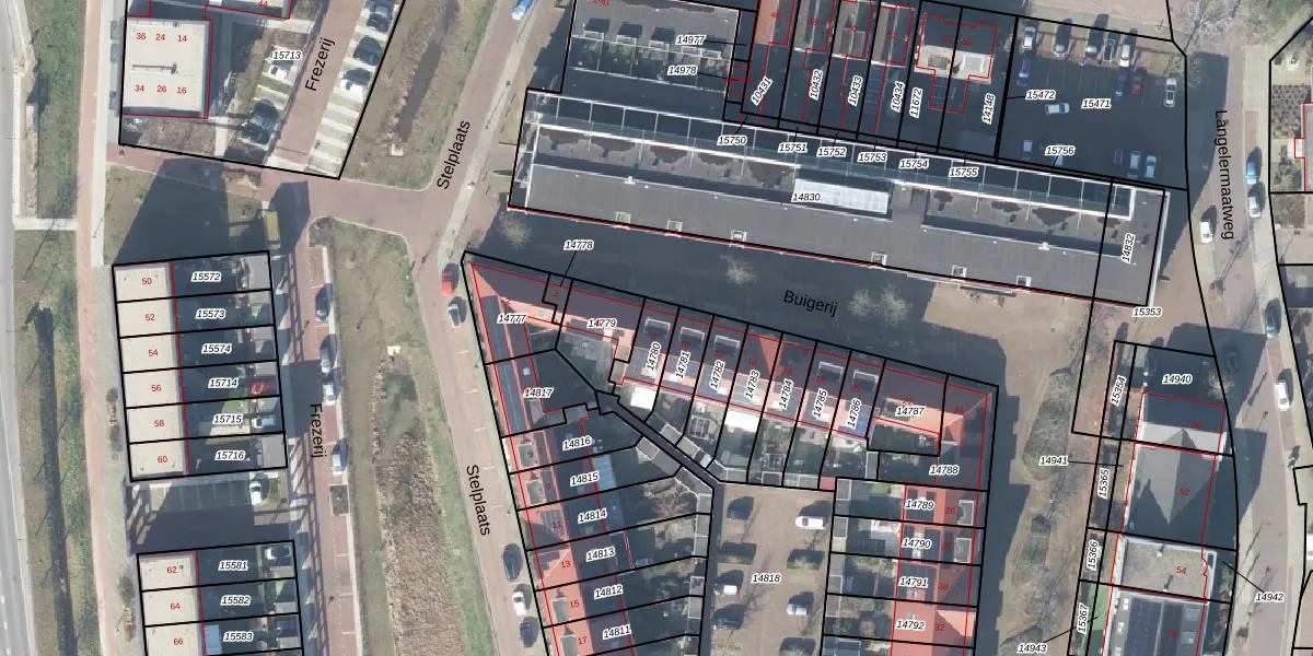 Het perceel waarop Buigerij 8 staat heeft een oppervlakte van 106 m². Dit is een middelgroot perceel. De perceeloppervlakte wordt geregistreerd door het Kadaster. Gedetailleerde informatie over de maten van dit perceel kunt u vinden in het rapport Kadastrale kaart met maatvoering van Buigerij 8.