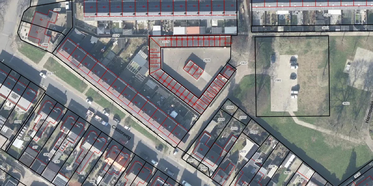 Castorweg 57-G11 is gelegen op kadastraal perceel HGL01P1575. Deze kadastrale aanduiding is uniek en wordt gebruikt door het Kadaster om eigendomsrechten en andere zakelijke rechten vast te leggen. Het perceel maakt onderdeel uit van de kadastrale gemeente Hengelo Overijssel.