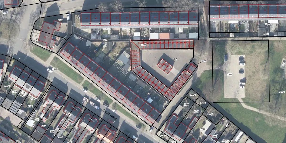 Castorweg 57-G16 is gelegen op kadastraal perceel HGL01P1575. Deze kadastrale aanduiding is uniek en wordt gebruikt door het Kadaster om eigendomsrechten en andere zakelijke rechten vast te leggen. Het perceel maakt onderdeel uit van de kadastrale gemeente Hengelo Overijssel.