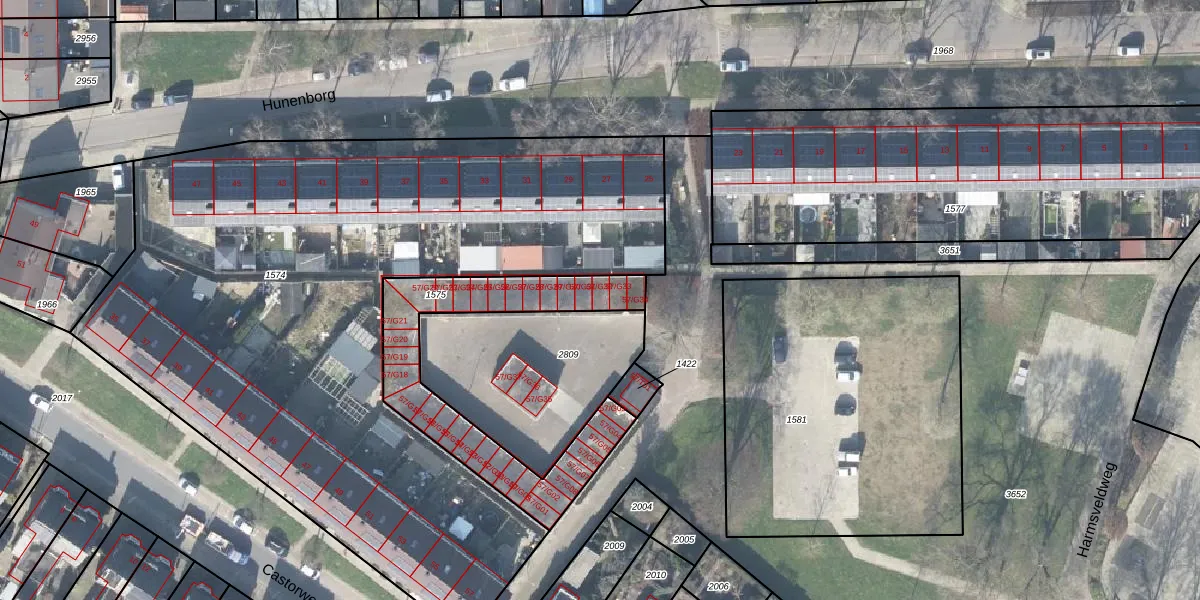 Castorweg 57-G32 is gelegen op kadastraal perceel HGL01P1575. Deze kadastrale aanduiding is uniek en wordt gebruikt door het Kadaster om eigendomsrechten en andere zakelijke rechten vast te leggen. Het perceel maakt onderdeel uit van de kadastrale gemeente Hengelo Overijssel.