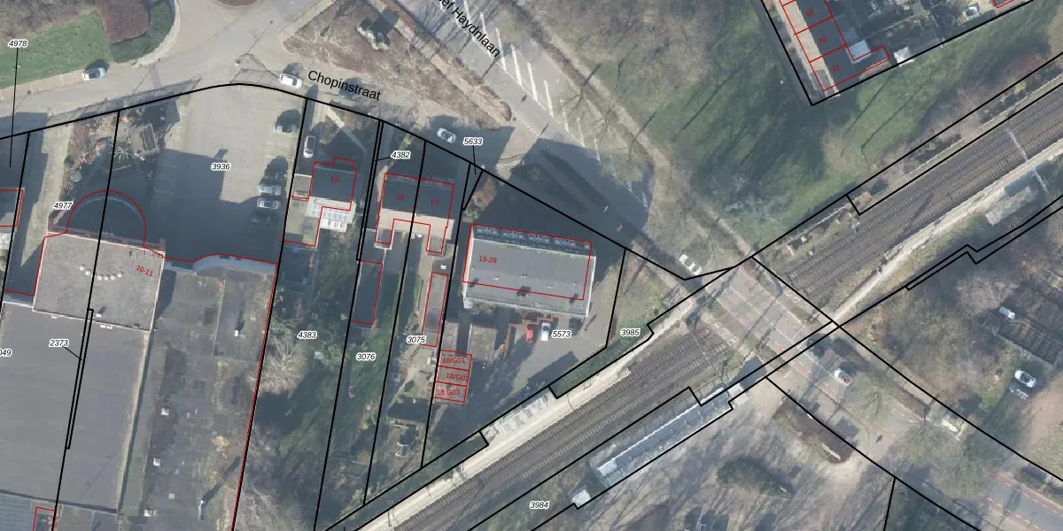 Het perceel waarop Chopinstraat 28 staat heeft een oppervlakte van 1190 m². Dit is een zeer groot perceel. De perceeloppervlakte wordt geregistreerd door het Kadaster. Gedetailleerde informatie over de maten van dit perceel kunt u vinden in het rapport Kadastrale kaart met maatvoering van Chopinstraat 28.