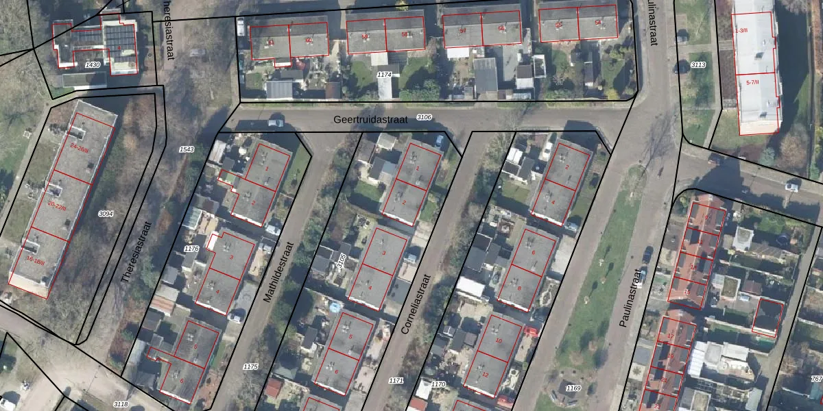 Het perceel waarop Corneliastraat 2 staat heeft een oppervlakte van 2200 m². Dit is een zeer groot perceel. De perceeloppervlakte wordt geregistreerd door het Kadaster. Gedetailleerde informatie over de maten van dit perceel kunt u vinden in het rapport Kadastrale kaart met maatvoering van Corneliastraat 2.