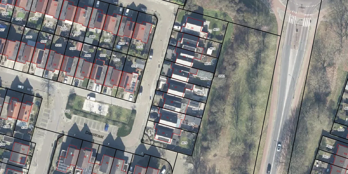 Het perceel waarop Dasstraat 37 staat heeft een oppervlakte van 268 m². Dit is een middelgroot perceel. De perceeloppervlakte wordt geregistreerd door het Kadaster. Gedetailleerde informatie over de maten van dit perceel kunt u vinden in het rapport Kadastrale kaart met maatvoering van Dasstraat 37.