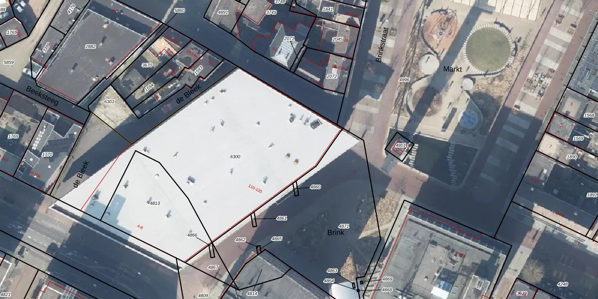 Het perceel waarop de Bleek 45 staat heeft een oppervlakte van 2636 m². Dit is een zeer groot perceel. De perceeloppervlakte wordt geregistreerd door het Kadaster. Gedetailleerde informatie over de maten van dit perceel kunt u vinden in het rapport Kadastrale kaart met maatvoering van de Bleek 45.