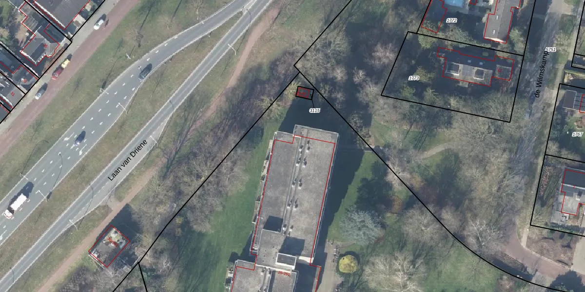 Het perceel waarop de Wilmskamp 261 staat heeft een oppervlakte van 1,1 ha. Dit is een zeer groot perceel. De perceeloppervlakte wordt geregistreerd door het Kadaster. Gedetailleerde informatie over de maten van dit perceel kunt u vinden in het rapport Kadastrale kaart met maatvoering van de Wilmskamp 261.