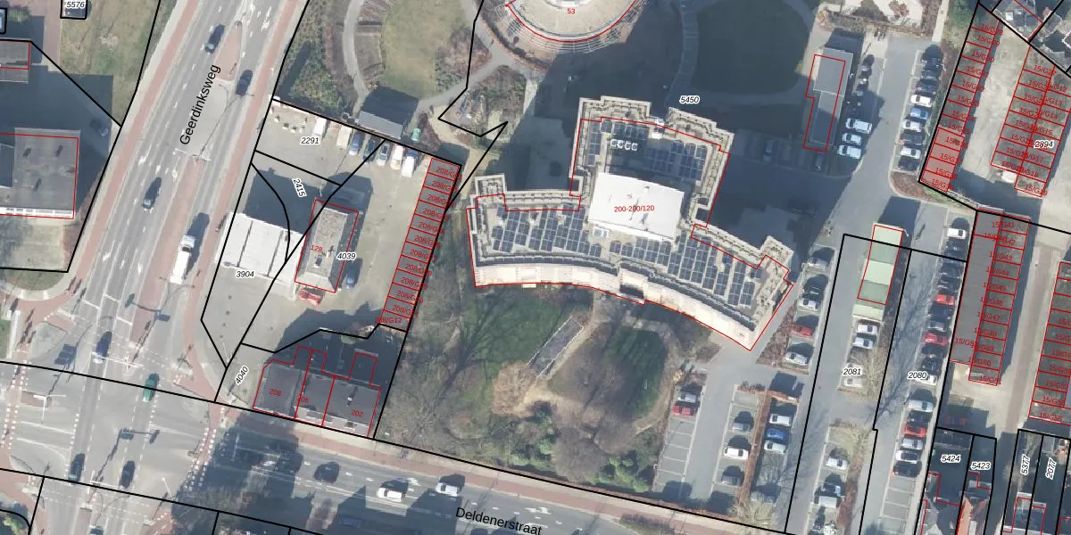 Het perceel waarop Deldenerstraat 200-10 staat heeft een oppervlakte van 1,2 ha. Dit is een zeer groot perceel. De perceeloppervlakte wordt geregistreerd door het Kadaster. Gedetailleerde informatie over de maten van dit perceel kunt u vinden in het rapport Kadastrale kaart met maatvoering van Deldenerstraat 200-10.
