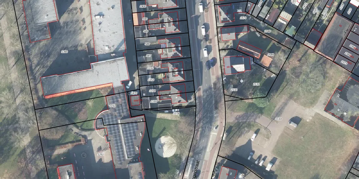 Gebruik de zoekbalk of klik op een perceel voor informatie over de adressen binnen dit perceel.