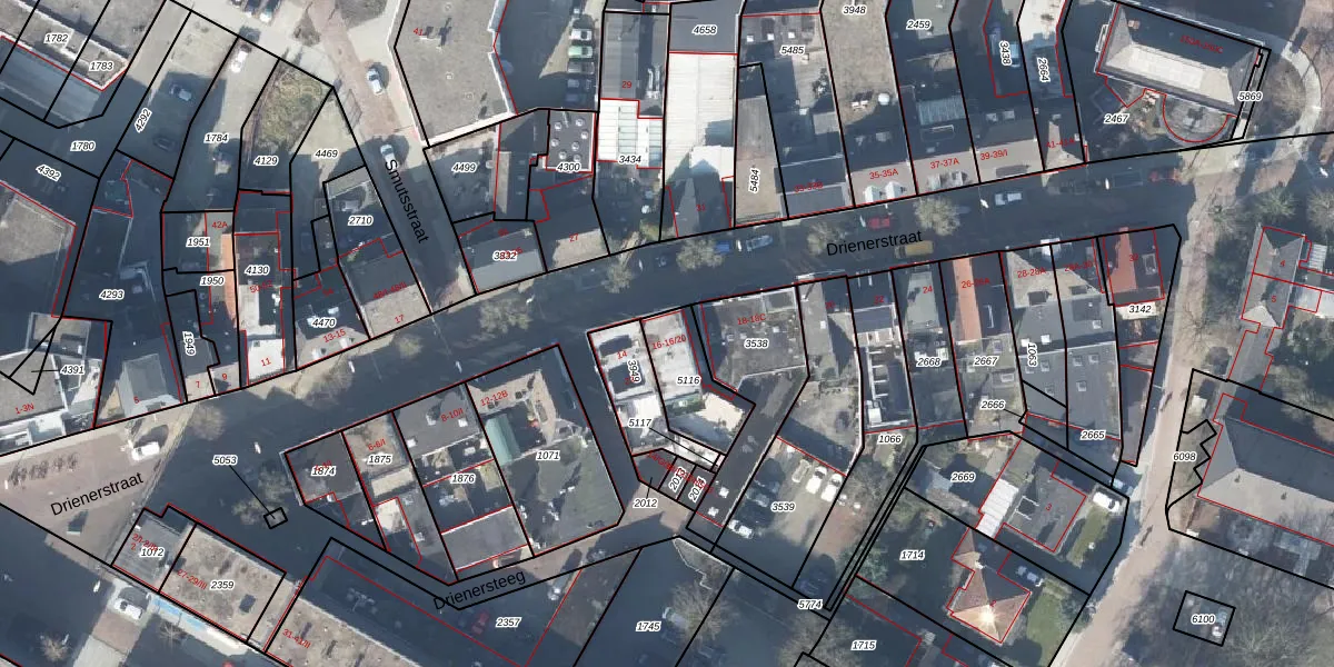 Het perceel waarop Drienerstraat 16 staat heeft een oppervlakte van 187 m². Dit is een middelgroot perceel. De perceeloppervlakte wordt geregistreerd door het Kadaster. Gedetailleerde informatie over de maten van dit perceel kunt u vinden in het rapport Kadastrale kaart met maatvoering van Drienerstraat 16.