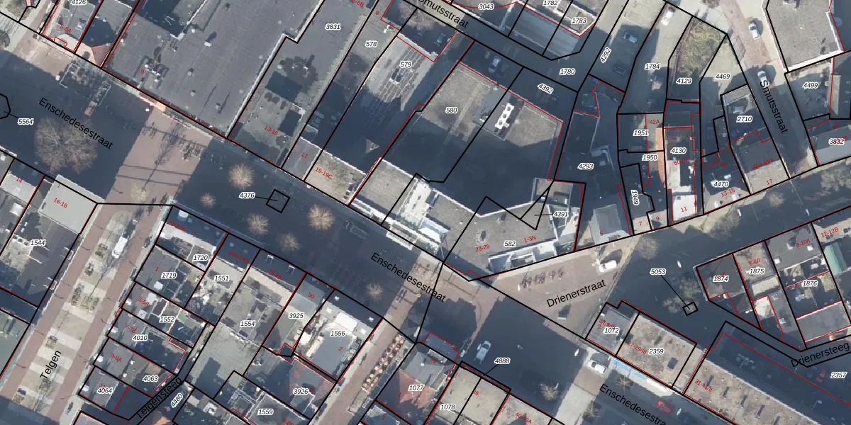 Het adres is gelegen op perceel 4392 in de sectie O en de kadastrale gemeente Hengelo Overijssel. De kadastrale aanduiding is aldus HGL01-O-4392. Het perceel is 863 m² groot. Dat is kleiner dan de gemiddelde perceeloppervlakte in Hengelo Overijssel, dat op 1639,76 m² ligt. De grootste perceeloppervlakte in de kadastrale gemeente is 57,4 ha. De kleinste oppervlakte bedraagt 0 m². Op het perceel zijn 7 adressen aanwezig. De laatste wijziging in het de Basisregistratie Kadaster (BRK) was op 18-04-2000.