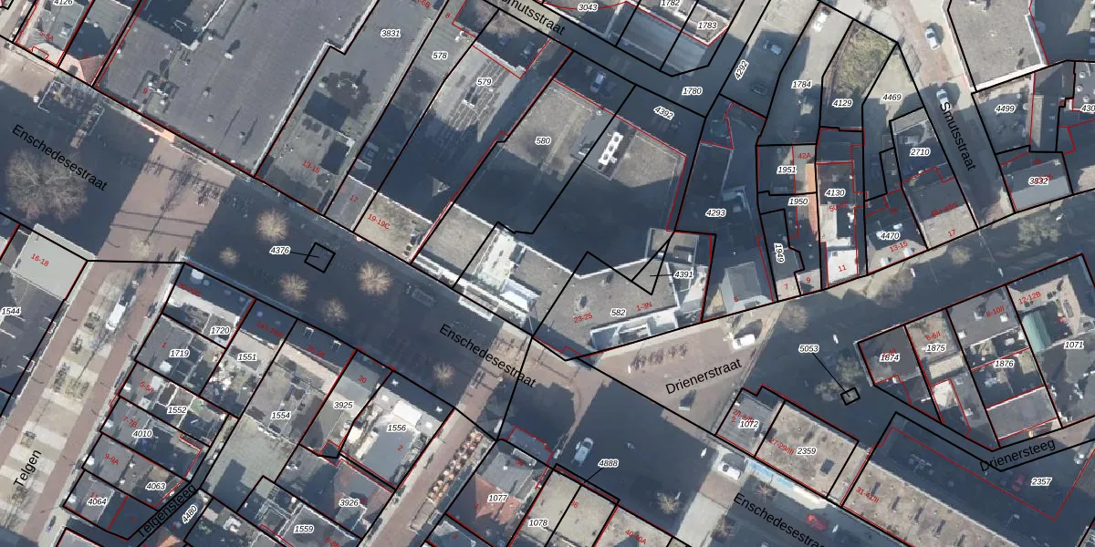 Het adres is gelegen op perceel 4392 in de sectie O en de kadastrale gemeente Hengelo Overijssel. De kadastrale aanduiding is aldus HGL01-O-4392. Het perceel is 863 m² groot. Dat is kleiner dan de gemiddelde perceeloppervlakte in Hengelo Overijssel, dat op 1639,76 m² ligt. De grootste perceeloppervlakte in de kadastrale gemeente is 57,4 ha. De kleinste oppervlakte bedraagt 0 m². Op het perceel zijn 7 adressen aanwezig. De huidige grenzen van het perceel zijn digitaal in de Basisregistratie Kadaster (BRK) geregistreerd op 18-04-2000.