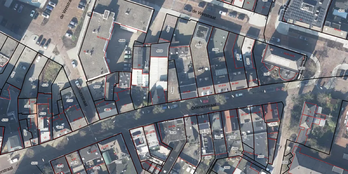 Drienerstraat 33-B is gelegen op kadastraal perceel HGL01O5484. Deze kadastrale aanduiding is uniek en wordt gebruikt door het Kadaster om eigendomsrechten en andere zakelijke rechten vast te leggen. Het perceel maakt onderdeel uit van de kadastrale gemeente Hengelo Overijssel.