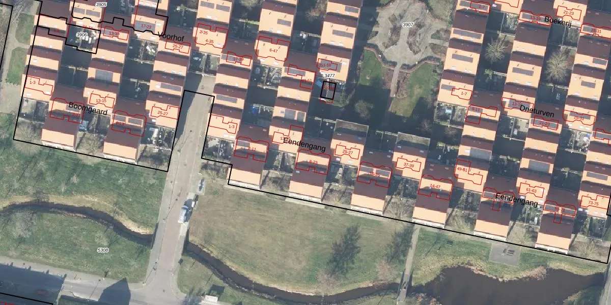 Het perceel waarop Eendengang 17 staat heeft een oppervlakte van 1,8 ha. Dit is een zeer groot perceel. De perceeloppervlakte wordt geregistreerd door het Kadaster. Gedetailleerde informatie over de maten van dit perceel kunt u vinden in het rapport Kadastrale kaart met maatvoering van Eendengang 17.