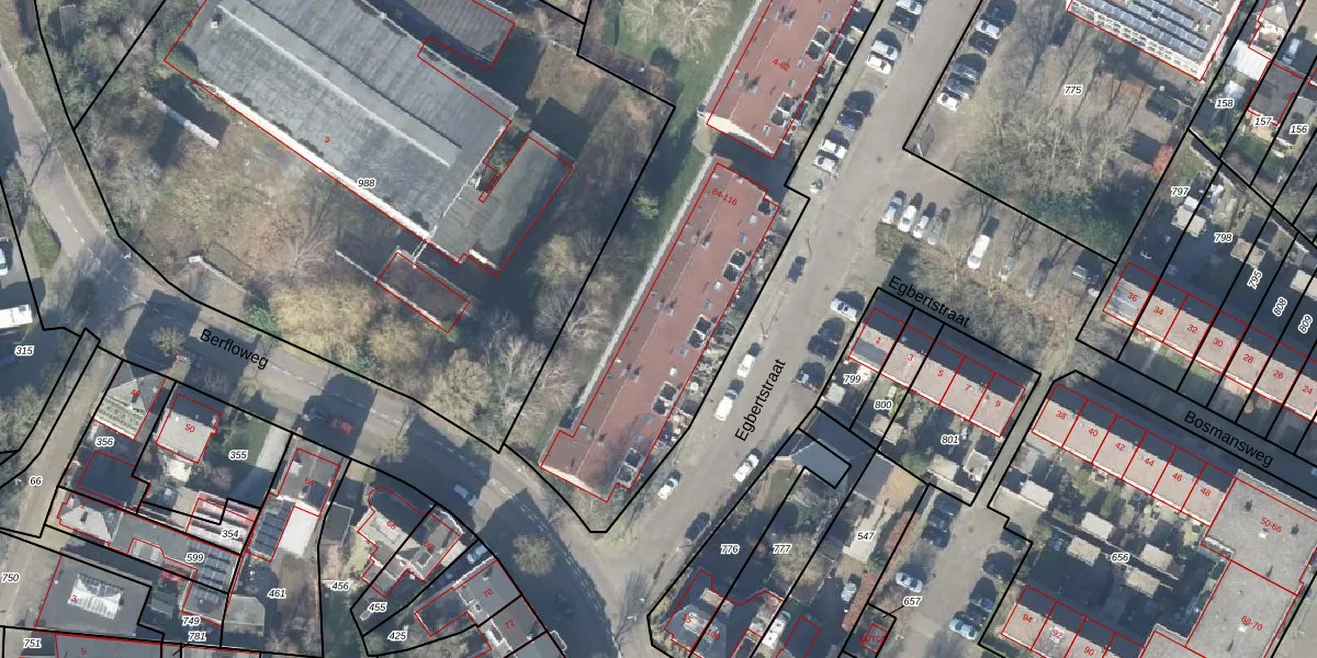 Het perceel waarop Egbertstraat 108 staat heeft een oppervlakte van 4080 m². Dit is een zeer groot perceel. De perceeloppervlakte wordt geregistreerd door het Kadaster. Gedetailleerde informatie over de maten van dit perceel kunt u vinden in het rapport Kadastrale kaart met maatvoering van Egbertstraat 108.