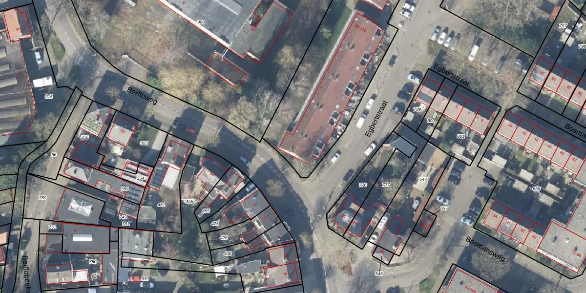 Het perceel waarop Egbertstraat 116 staat heeft een oppervlakte van 4080 m². Dit is een zeer groot perceel. De perceeloppervlakte wordt geregistreerd door het Kadaster. Gedetailleerde informatie over de maten van dit perceel kunt u vinden in het rapport Kadastrale kaart met maatvoering van Egbertstraat 116.