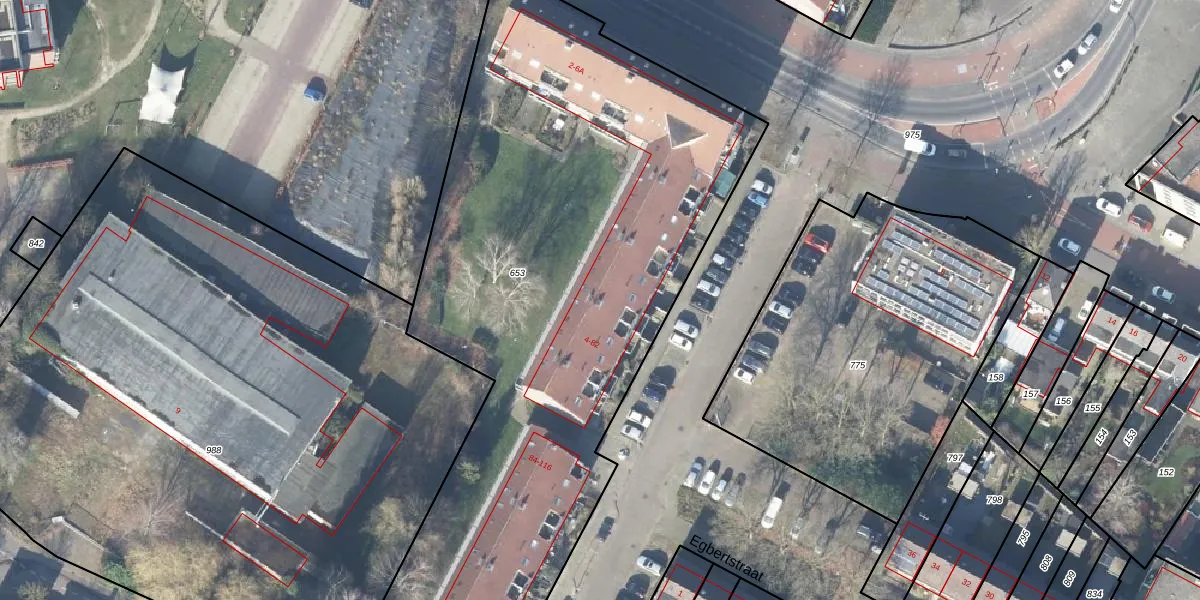 Het perceel waarop Egbertstraat 54 staat heeft een oppervlakte van 4080 m². Dit is een zeer groot perceel. De perceeloppervlakte wordt geregistreerd door het Kadaster. Gedetailleerde informatie over de maten van dit perceel kunt u vinden in het rapport Kadastrale kaart met maatvoering van Egbertstraat 54.