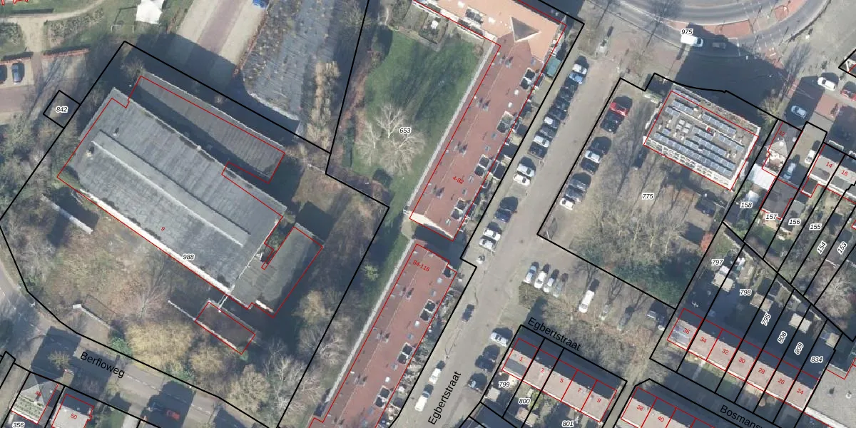 Het perceel waarop Egbertstraat 60 staat heeft een oppervlakte van 4080 m². Dit is een zeer groot perceel. De perceeloppervlakte wordt geregistreerd door het Kadaster. Gedetailleerde informatie over de maten van dit perceel kunt u vinden in het rapport Kadastrale kaart met maatvoering van Egbertstraat 60.