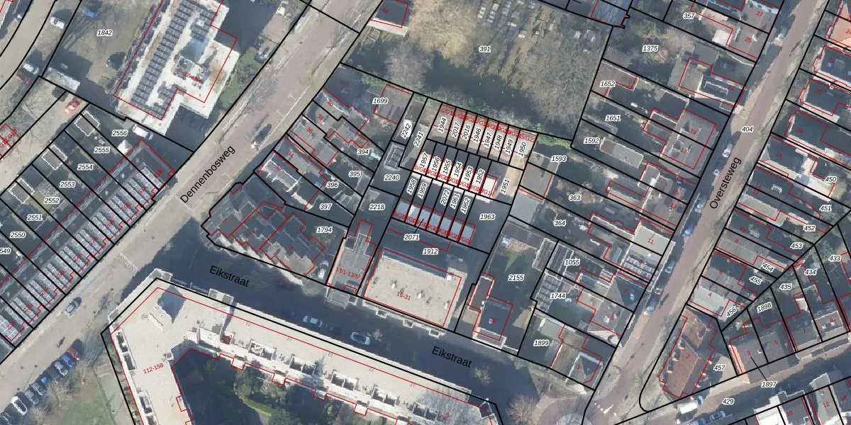 Het perceel waarop Eikstraat 15-G05 staat heeft een oppervlakte van 32 m². Dit is een klein perceel. De perceeloppervlakte wordt geregistreerd door het Kadaster. Gedetailleerde informatie over de maten van dit perceel kunt u vinden in het rapport Kadastrale kaart met maatvoering van Eikstraat 15-G05.
