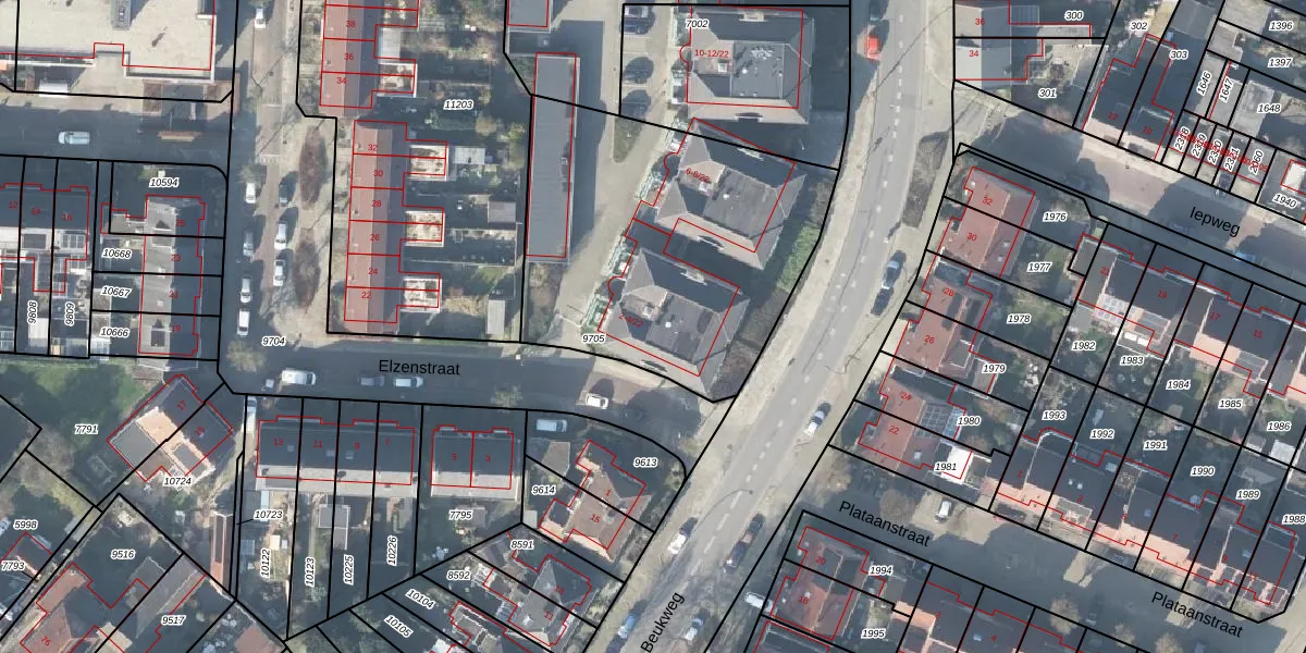 Het perceel waarop Elzenstraat 2-20 staat heeft een oppervlakte van 1570 m². Dit is een zeer groot perceel. De perceeloppervlakte wordt geregistreerd door het Kadaster. Gedetailleerde informatie over de maten van dit perceel kunt u vinden in het rapport Kadastrale kaart met maatvoering van Elzenstraat 2-20.