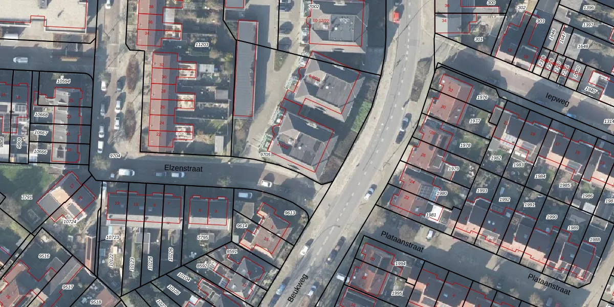 Het perceel waarop Elzenstraat 2-22 staat heeft een oppervlakte van 1570 m². Dit is een zeer groot perceel. De perceeloppervlakte wordt geregistreerd door het Kadaster. Gedetailleerde informatie over de maten van dit perceel kunt u vinden in het rapport Kadastrale kaart met maatvoering van Elzenstraat 2-22.