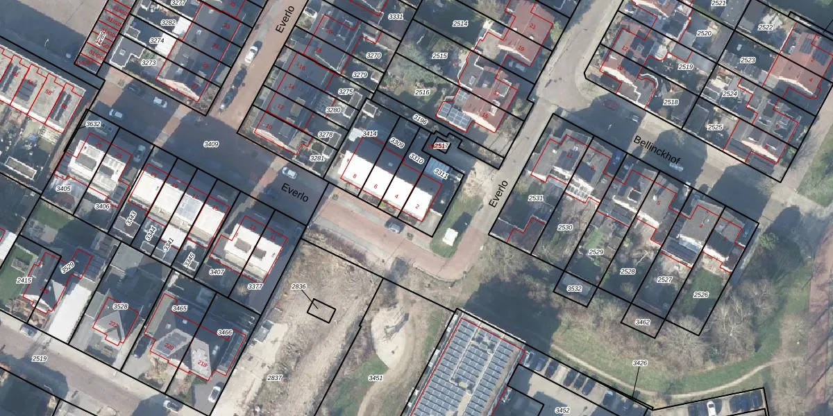 Het perceel waarop Everlo 2 staat heeft een oppervlakte van 159 m². Dit is een middelgroot perceel. De perceeloppervlakte wordt geregistreerd door het Kadaster. Gedetailleerde informatie over de maten van dit perceel kunt u vinden in het rapport Kadastrale kaart met maatvoering van Everlo 2.