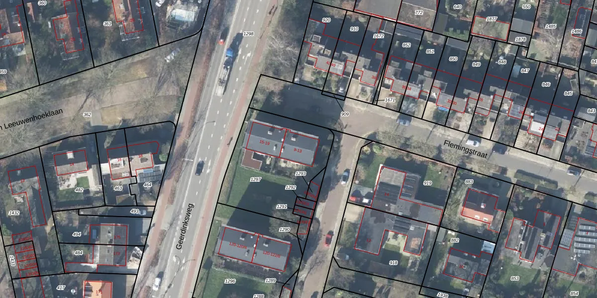 Het perceel waarop Flemingstraat 11 staat heeft een oppervlakte van 957 m². Dit is een groot perceel. De perceeloppervlakte wordt geregistreerd door het Kadaster. Gedetailleerde informatie over de maten van dit perceel kunt u vinden in het rapport Kadastrale kaart met maatvoering van Flemingstraat 11.