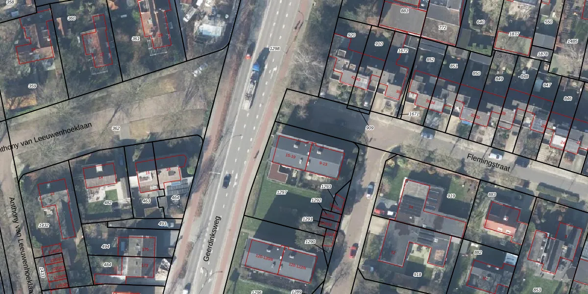 Het perceel waarop Flemingstraat 15 staat heeft een oppervlakte van 957 m². Dit is een groot perceel. De perceeloppervlakte wordt geregistreerd door het Kadaster. Gedetailleerde informatie over de maten van dit perceel kunt u vinden in het rapport Kadastrale kaart met maatvoering van Flemingstraat 15.