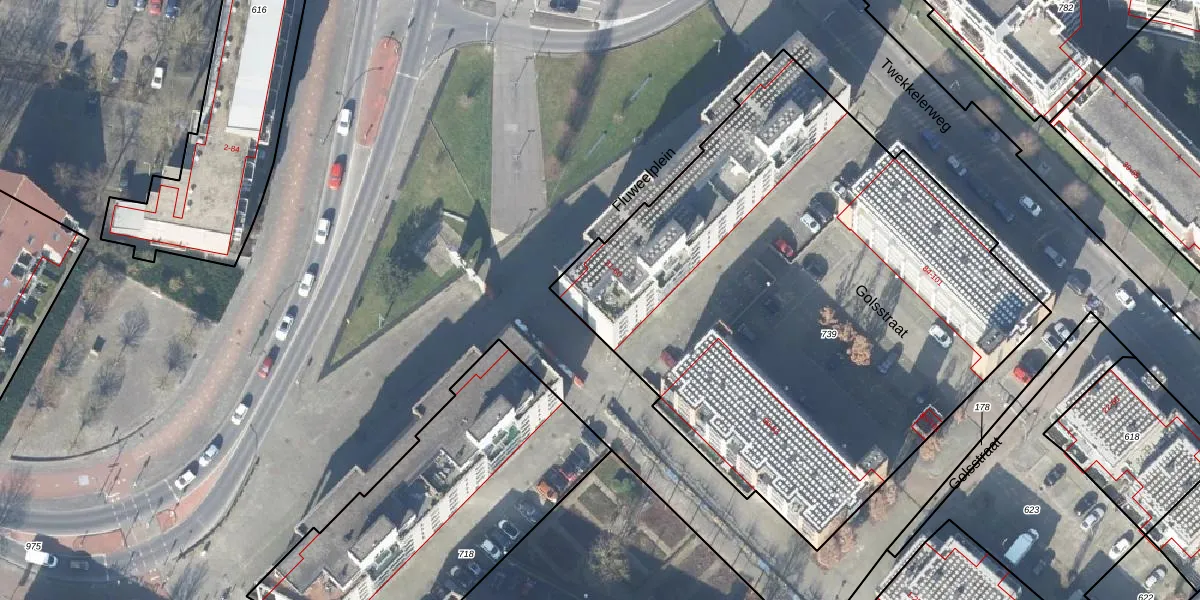 Het perceel waarop Fluweelplein 38 staat heeft een oppervlakte van 3532 m². Dit is een zeer groot perceel. De perceeloppervlakte wordt geregistreerd door het Kadaster. Gedetailleerde informatie over de maten van dit perceel kunt u vinden in het rapport Kadastrale kaart met maatvoering van Fluweelplein 38.