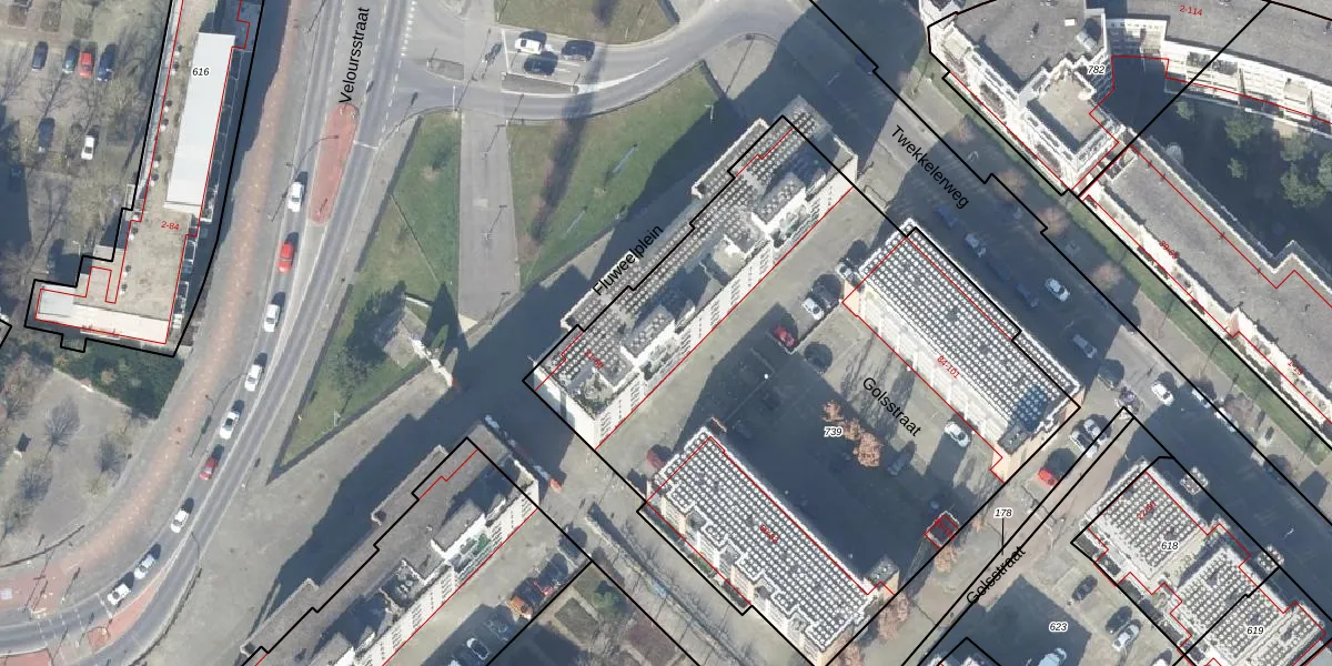 Het perceel waarop Fluweelplein 43 staat heeft een oppervlakte van 3532 m². Dit is een zeer groot perceel. De perceeloppervlakte wordt geregistreerd door het Kadaster. Gedetailleerde informatie over de maten van dit perceel kunt u vinden in het rapport Kadastrale kaart met maatvoering van Fluweelplein 43.