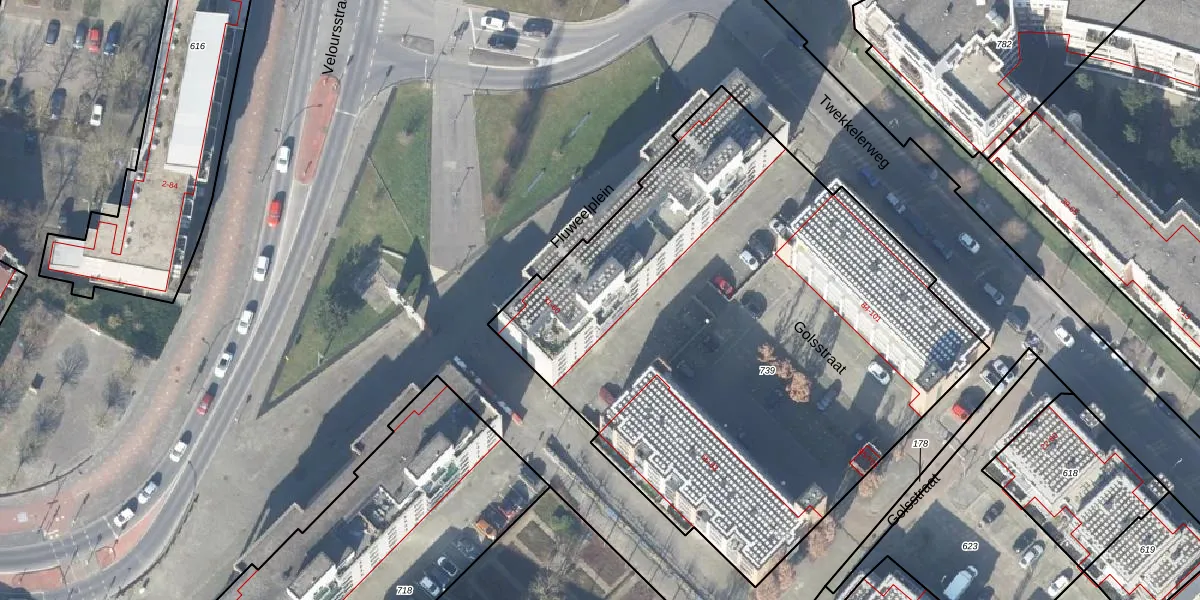 Het perceel waarop Fluweelplein 45 staat heeft een oppervlakte van 3532 m². Dit is een zeer groot perceel. De perceeloppervlakte wordt geregistreerd door het Kadaster. Gedetailleerde informatie over de maten van dit perceel kunt u vinden in het rapport Kadastrale kaart met maatvoering van Fluweelplein 45.