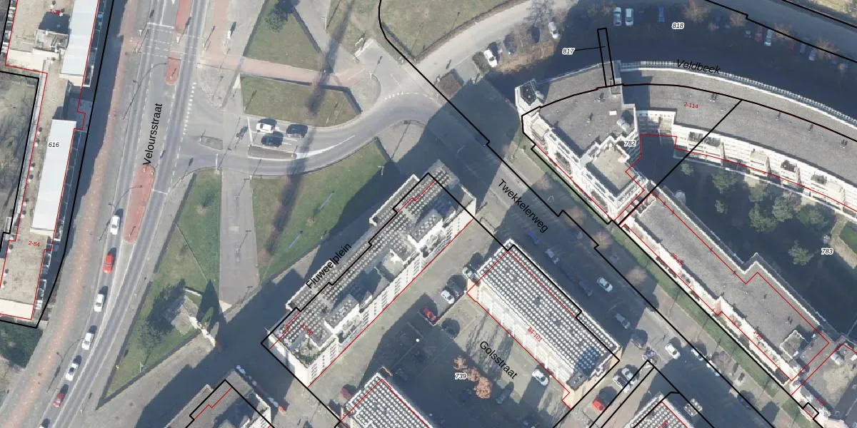 Het perceel waarop Fluweelplein 55 staat heeft een oppervlakte van 3532 m². Dit is een zeer groot perceel. De perceeloppervlakte wordt geregistreerd door het Kadaster. Gedetailleerde informatie over de maten van dit perceel kunt u vinden in het rapport Kadastrale kaart met maatvoering van Fluweelplein 55.