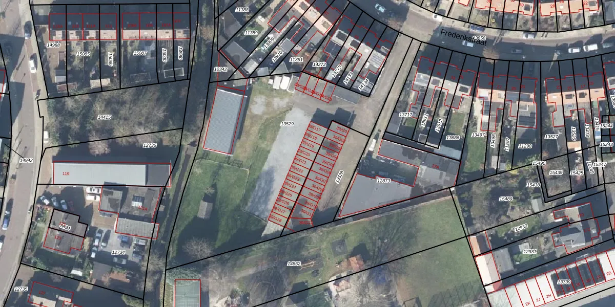 Frederikstraat 39-G20 is gelegen op kadastraal perceel HGL01D13529. Deze kadastrale aanduiding is uniek en wordt gebruikt door het Kadaster om eigendomsrechten en andere zakelijke rechten vast te leggen. Het perceel maakt onderdeel uit van de kadastrale gemeente Hengelo Overijssel.