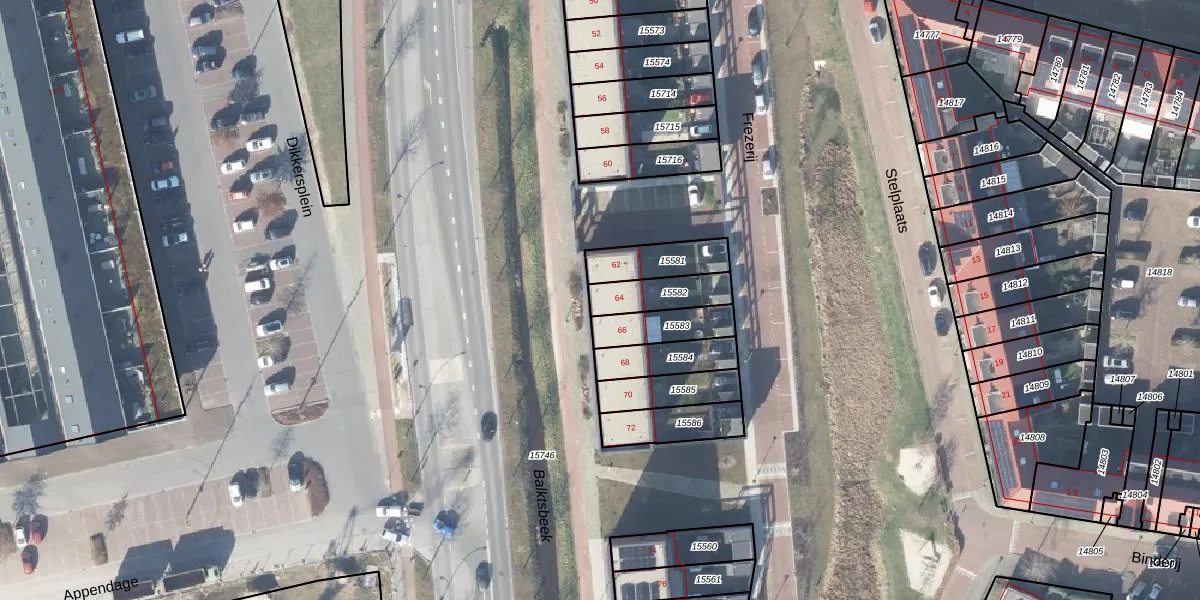 Het perceel waarop Frezerij 64 staat heeft een oppervlakte van 129 m². Dit is een middelgroot perceel. De perceeloppervlakte wordt geregistreerd door het Kadaster. Gedetailleerde informatie over de maten van dit perceel kunt u vinden in het rapport Kadastrale kaart met maatvoering van Frezerij 64.