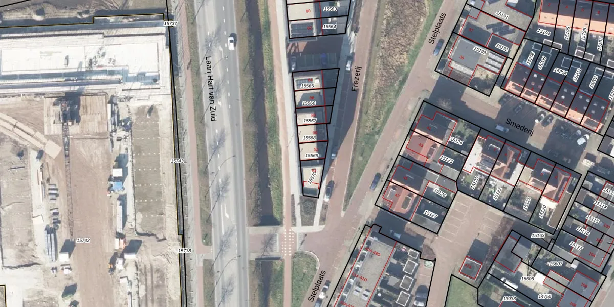 Gebruik de zoekbalk of klik op een perceel voor informatie over de adressen binnen dit perceel.