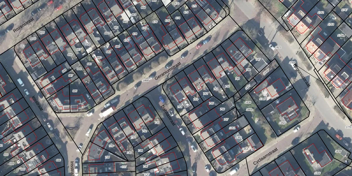 Het perceel waarop Geraniumstraat 15 staat heeft een oppervlakte van 200 m². Dit is een middelgroot perceel. De perceeloppervlakte wordt geregistreerd door het Kadaster. Gedetailleerde informatie over de maten van dit perceel kunt u vinden in het rapport Kadastrale kaart met maatvoering van Geraniumstraat 15.
